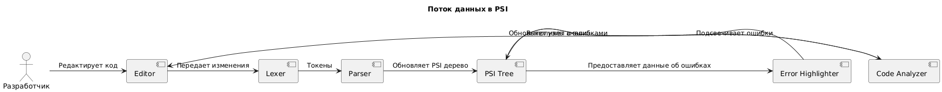 Диаграммы, представленные выше, помогают визуализировать различные аспекты архитектуры PSI и ее взаимодействие с другими компонентами IDE.